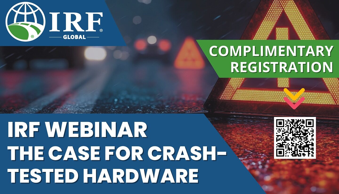 Puede ser una imagen de 2 personas y texto que dice "IRF ® GLOBAL COMPLIMENTARY REGISTRATION IRF WEBINAR THE CASE FOR CRASH- TESTED HARDWARE About Webinar PRESENTED BY The Webinar will examine the Safe System Approach, the importance of performance- -based standards, and the evolution of crash testing from early methods to today's rigorous international standards like MASH and EN 317. Phil PhilLuke Luke Commercial Manager (International) Highway Care Ltd. 前 July 23, 2025 10:00 11.30 AM EST www.IRF.global JOIN US John Durkos VP Technical: Support & Marketing Road Systems, Inc. t.ly/YxzRY"