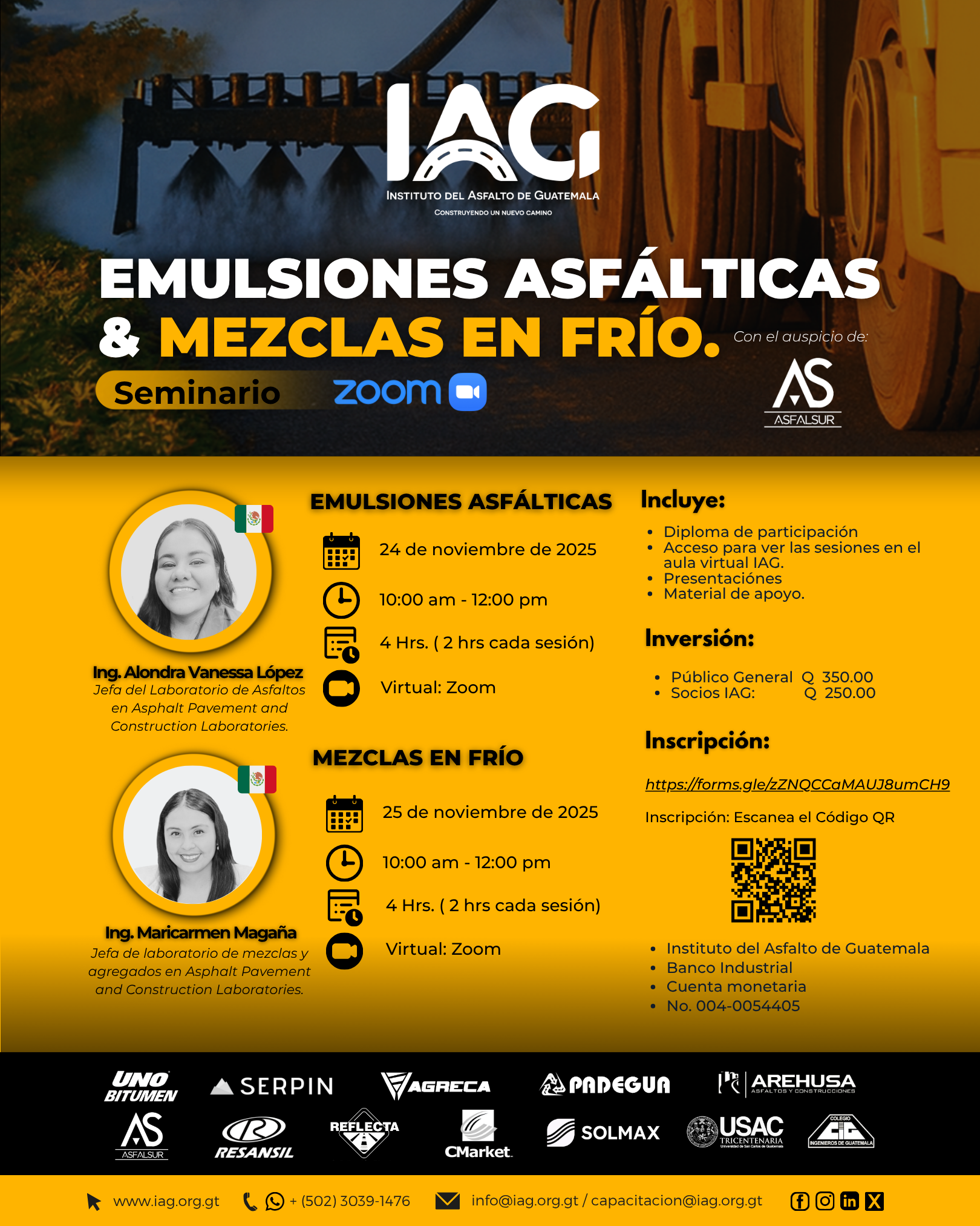 Ing. Alondra Vanessa López, Mx 🇲🇽 / Emulsiones Asfálticas / Lunes 24 nov de 10:00-12:00 hrs.